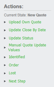 Once the quote has been accepted, you will se an action list on the right-hand side.  Click on the Manual Quote Update Values