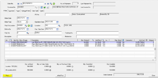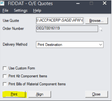 Click Export Quote on the Top Left