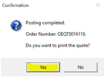 Posting Completed, Click Yes