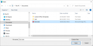 - Browse to the location of the attachment.