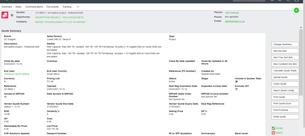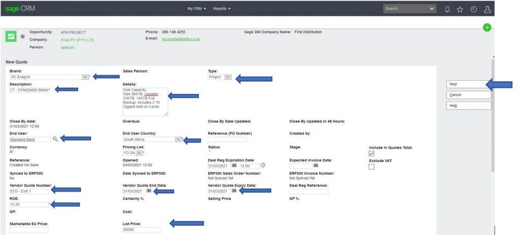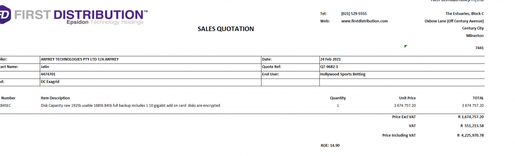 VENDER QUOTE NUMBER: CONFIGURATION NUMBER ETC
