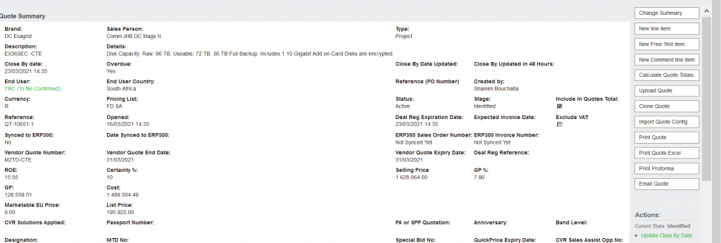 VENDOR QUOTE EXPIRY DATE: EXPIRY DATE OF THE VENDOR CONFIGURATION