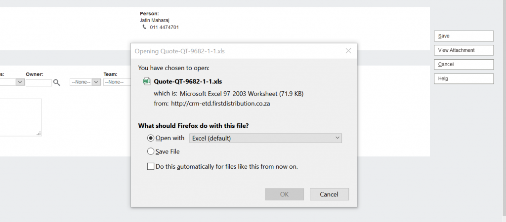 • Select the “OPEN WITH” function as this will open the quote so checks can be administered!