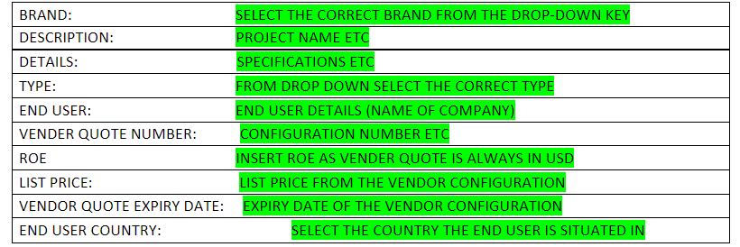 The below table (on image/copy below) must be on the mail and also completed by the Partner/Account Manager.