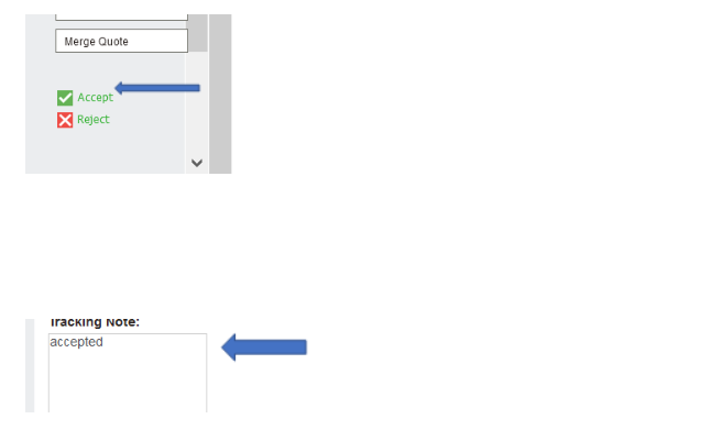 Select Accept and add in a Tracking Note.