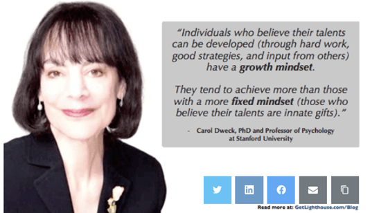According to Standford psychologist Carol Dweck, a growth mindset makes a critical difference in virtually every way when it comes to learning and development. And it’s especially important for managers. Those with a fixed mindset believe intelligence is fixed, which affects their ability to handle challenges, criticism, and work with others. Meanwhile, those with a growth mindset embrace challenges, learn from criticism, and learn from others who succeed.