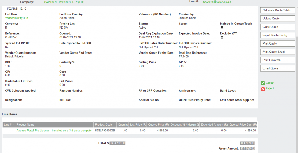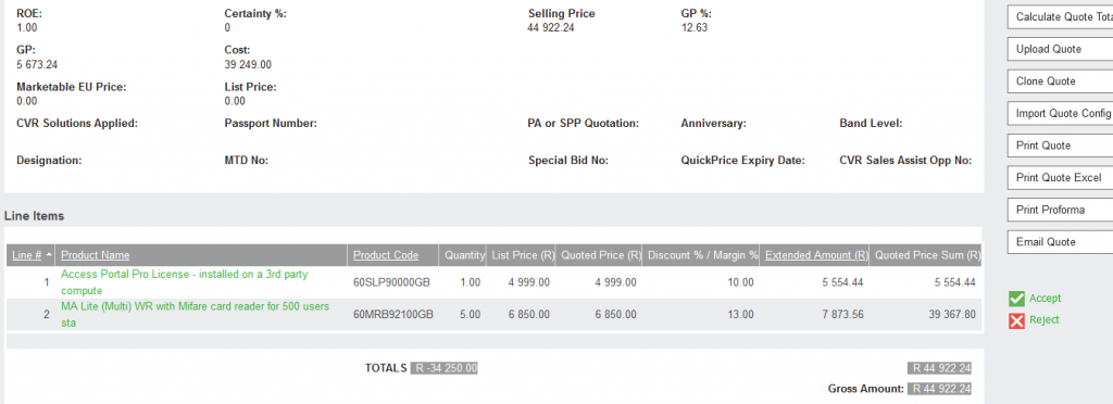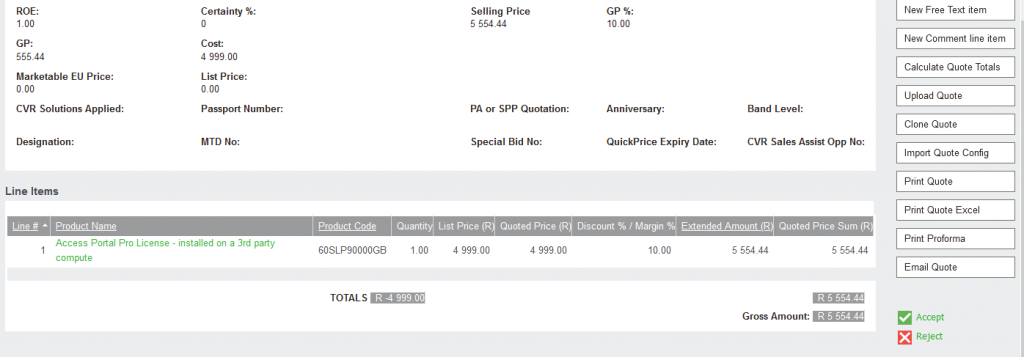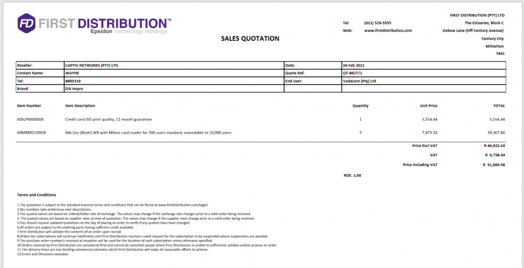 - ROE will be R1 as we receive pricing in ZAR. For USD and Euro Prices, a manual calculation will be required.