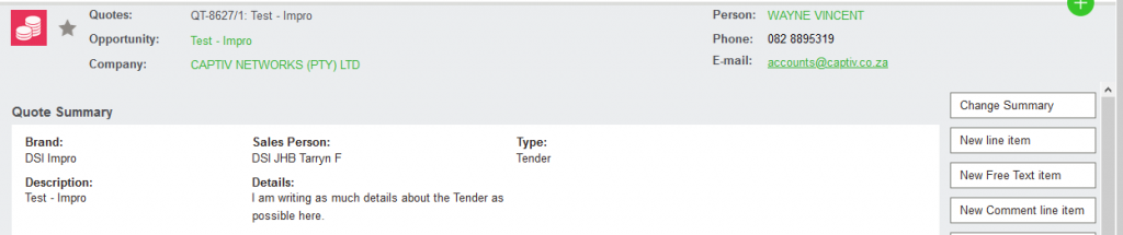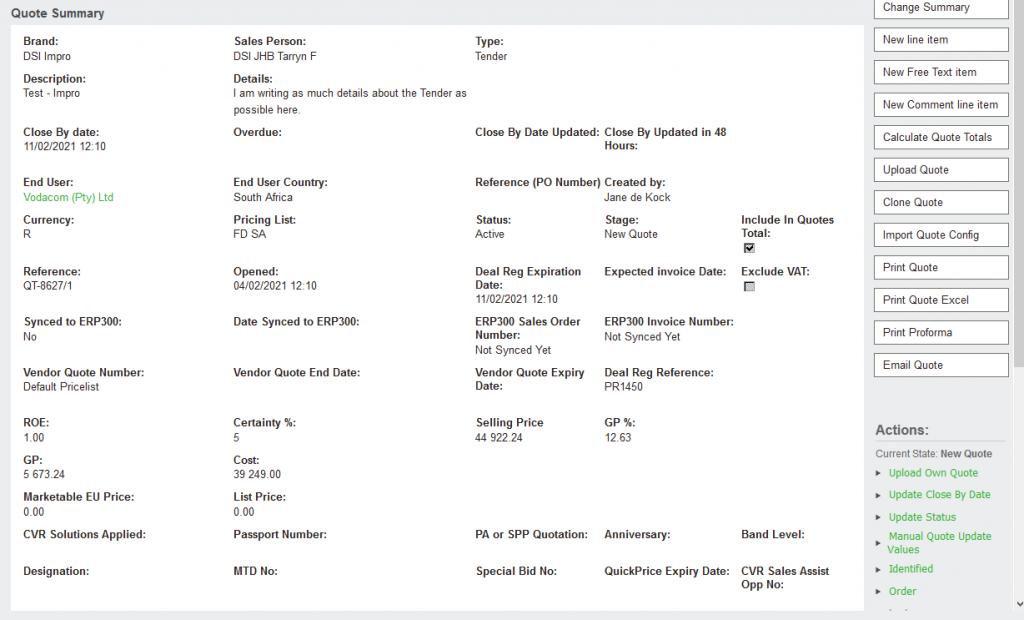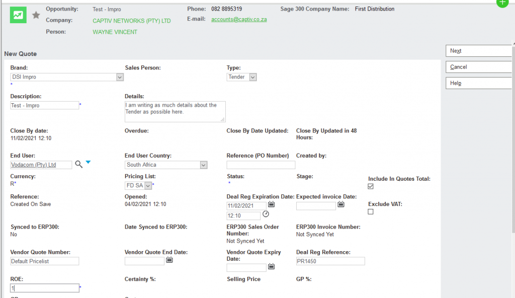 - Fill out the End User. NB – The End User needs to be created on the system if not already. This can be done by sending it to the Code Creation Team to upload. If the End User has not been loaded at the time of quotation, select TBC (To be confirmed). This will allow you to proceed, however, it remains your responsibility update once the code has been loaded onto the system.