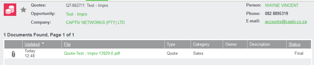 Click on the paper clip icon. The quote will pop up on a separate window in your network browser. You are now able to save this document to your local folder.