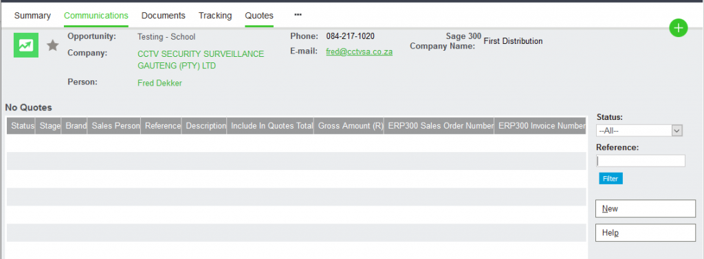 Click on the Quotes Tab. A new window will load. Click on the New Button.