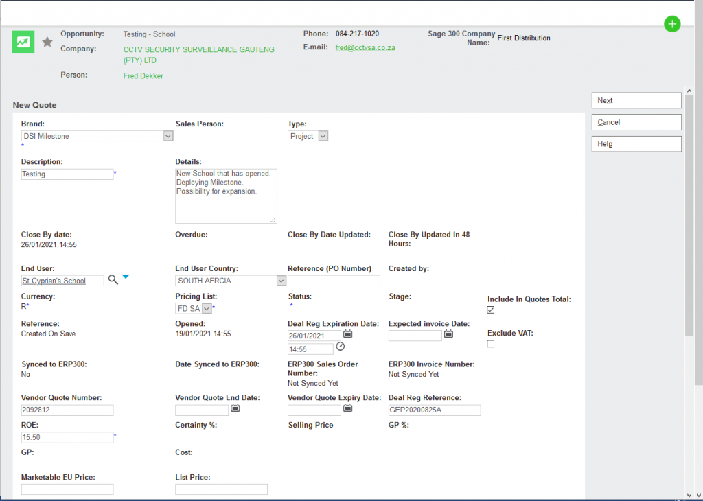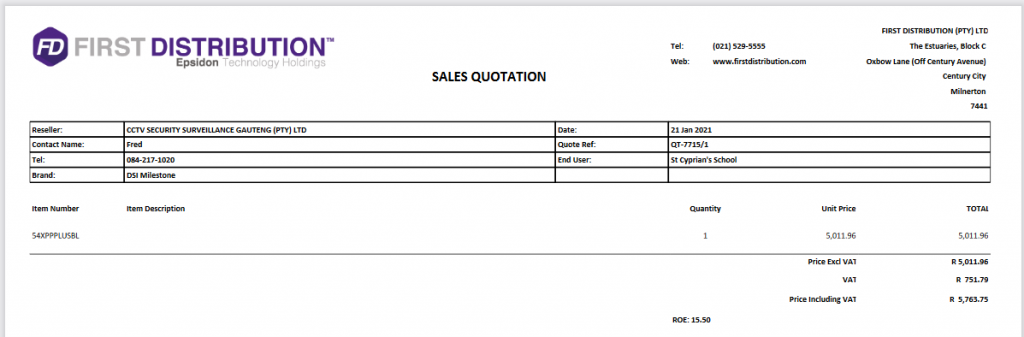 • ROE if applicable – ROE is applicable if the vendor quotes us in a different currency, for example, Milestone, iSentry, etc. If our Vendor gives us pricing in ZAR – then you need to apply “1” in the ROE section)