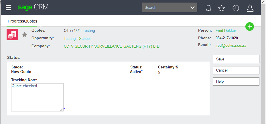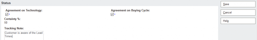 The Below page will load, and you will need to put in a tracking Note. Click on the Save Button.