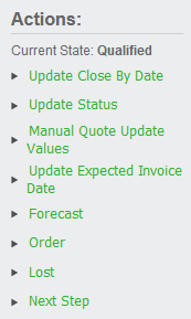 On the right-hand side there is a list of actions to choose from. Click on the Manual Quote Update Values