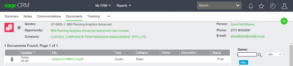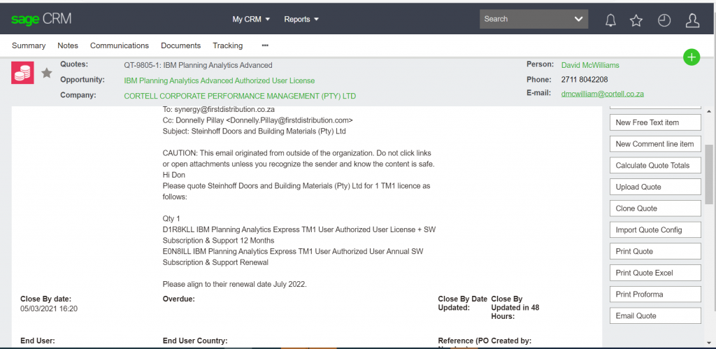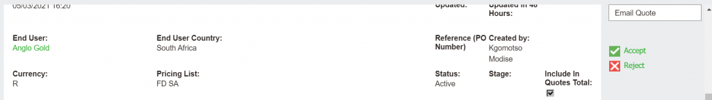 - Once completed, it will take you back to the Quote page and the quote will go into the Identified stage.