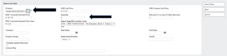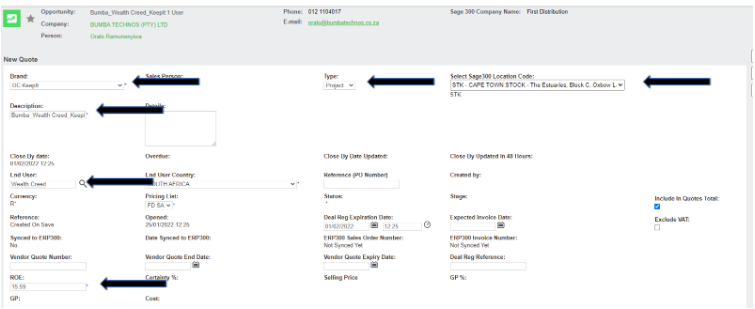 • End User:  Search and choose the correct end user (if not available leave blank, and ask Code Create to create EU)
