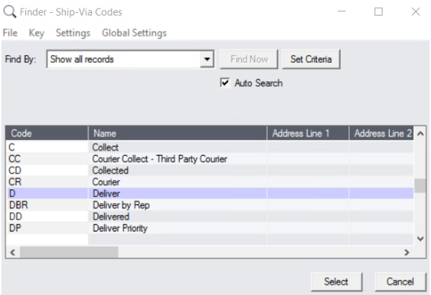 - Choose the desired shipping method by clicking on the search button