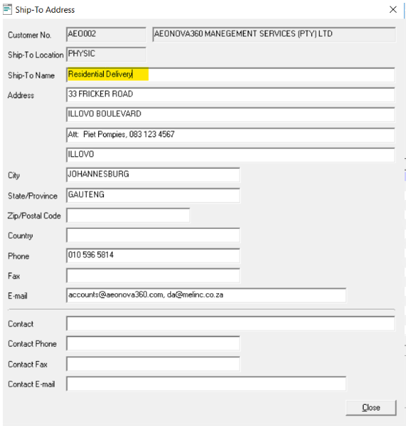 - Ensure “ship to” addresses are correct, if it’s a residential delivery please state under “ship to, contact names and telephone numbers to be captured correctly.