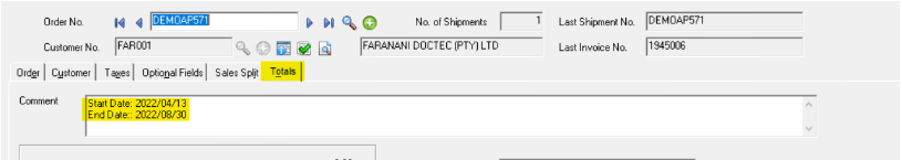 - In the “Totals Tab” this is very important, please type in, “the start date and end date of the contract”