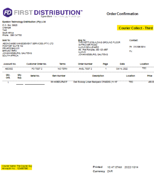 - If Couriers are collecting, please ensure the courier’s name, and as is sent through to JHB Store, TEC does not fill out courier waybills for customer collections…this is between the customer and their courier, and it is their responsibility to come with correct information and complete their own waybills.