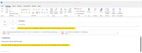 - Attached is only the SO to the email and if there are any approvals received from management. If it is a courier collecting, then attach the Airwaybill.