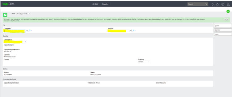 We search the customer/reseller under Company. Then add the person under Person. Under description, you add the solution the customer asking for with End user EG: MEDIRO   – BDO ADD ON