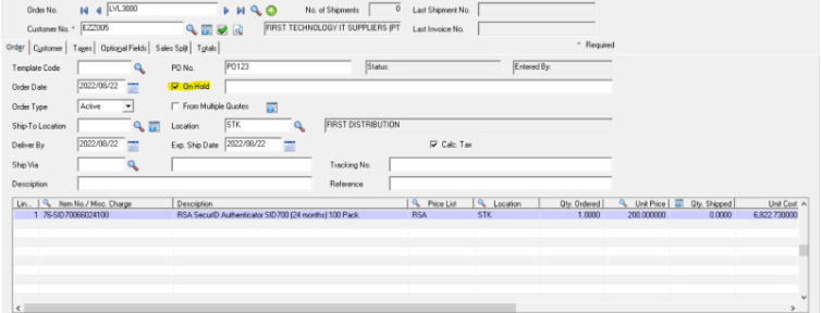 Once the hold is lifted –  send the order back to RSA Operations at rsa.ops@firstdistribution.com