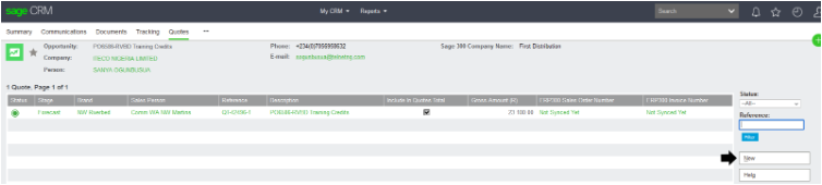 • Once completed, it will take you back to the Quote page and the quote will go into the New Quote stage.
