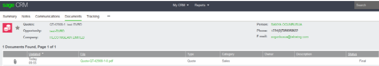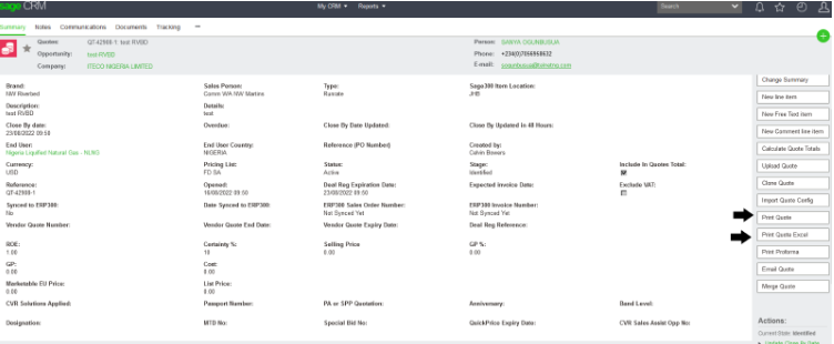• Once completed, it will take you back to the Quote page and the quote will go into the Identified stage.