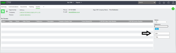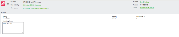 - Once completed, it will take you back to the Quote page and the quote will go into the New Quote stage.