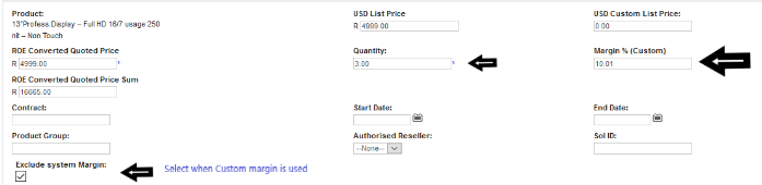 - Custom Margin – input your desired margin in the Margin % (Custom field) , used if client requires slightly better pricing **note, please tick exclude system margin if this option is required**