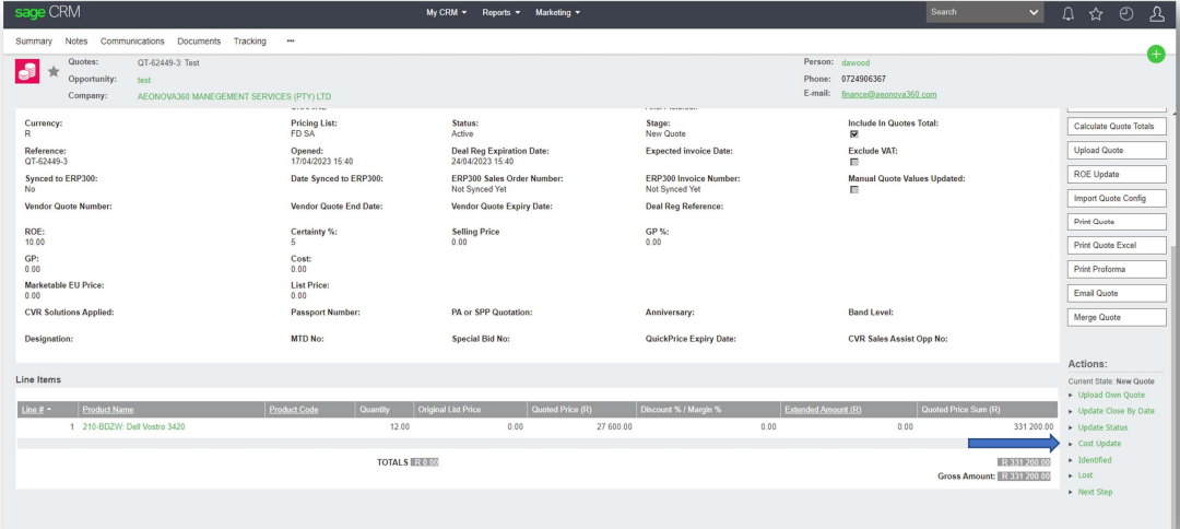 Once the summary of a quote has been created, please click on New Unlisted Item